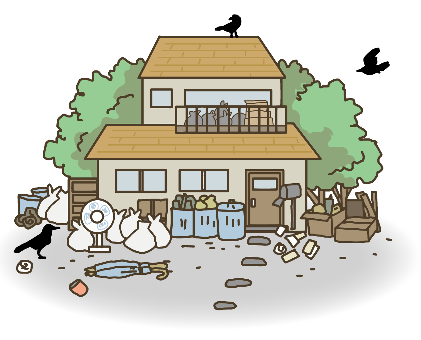 2、ゴミの除去や分別→部屋に積まれたゴミを分別し、処分する。