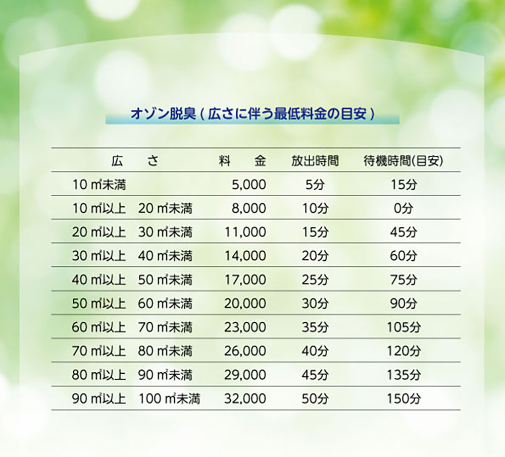 当社は業務用オゾン発生器(オゾンクラスター1400)を使用しておりますので、無人状態での作業となります。